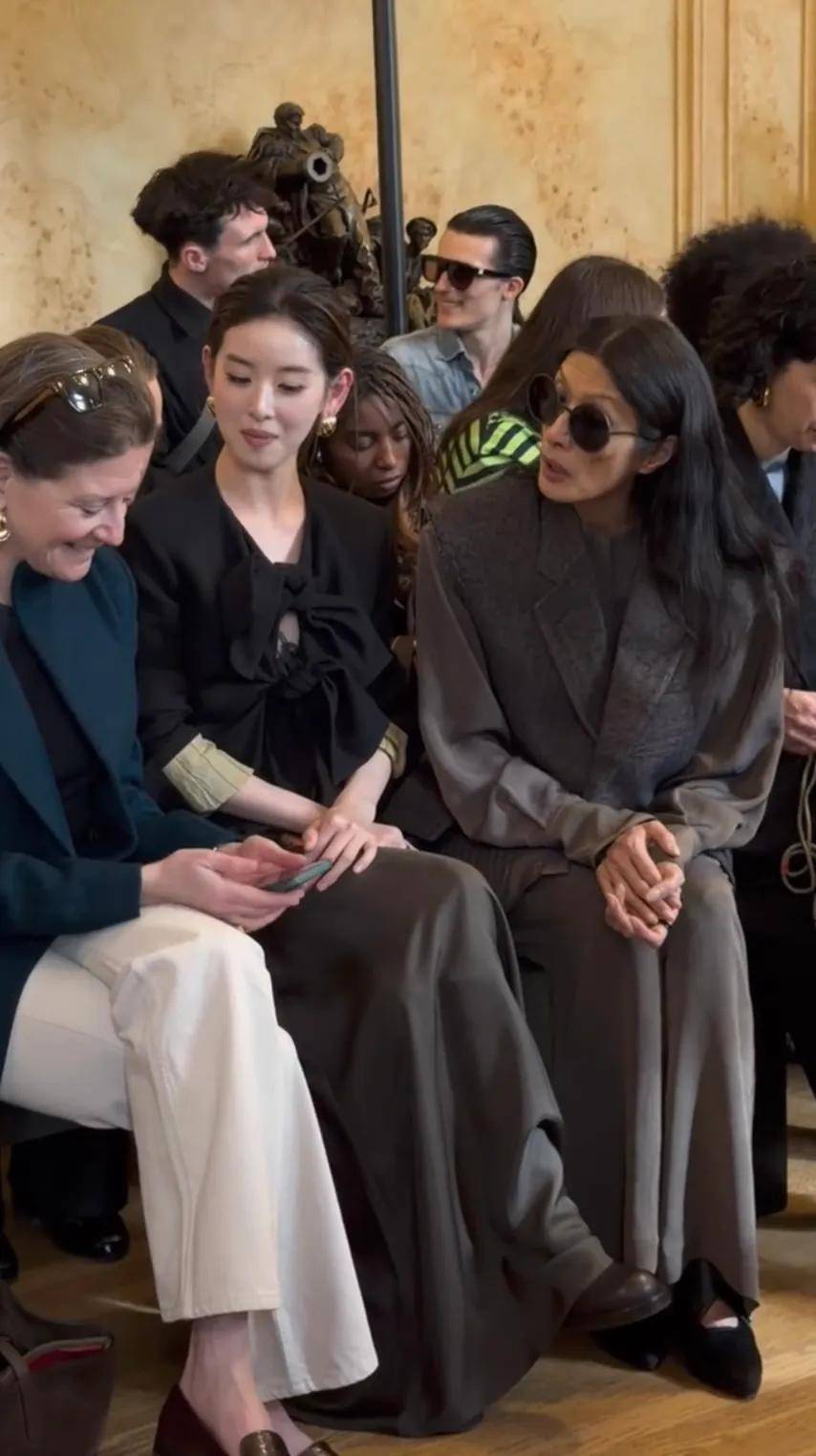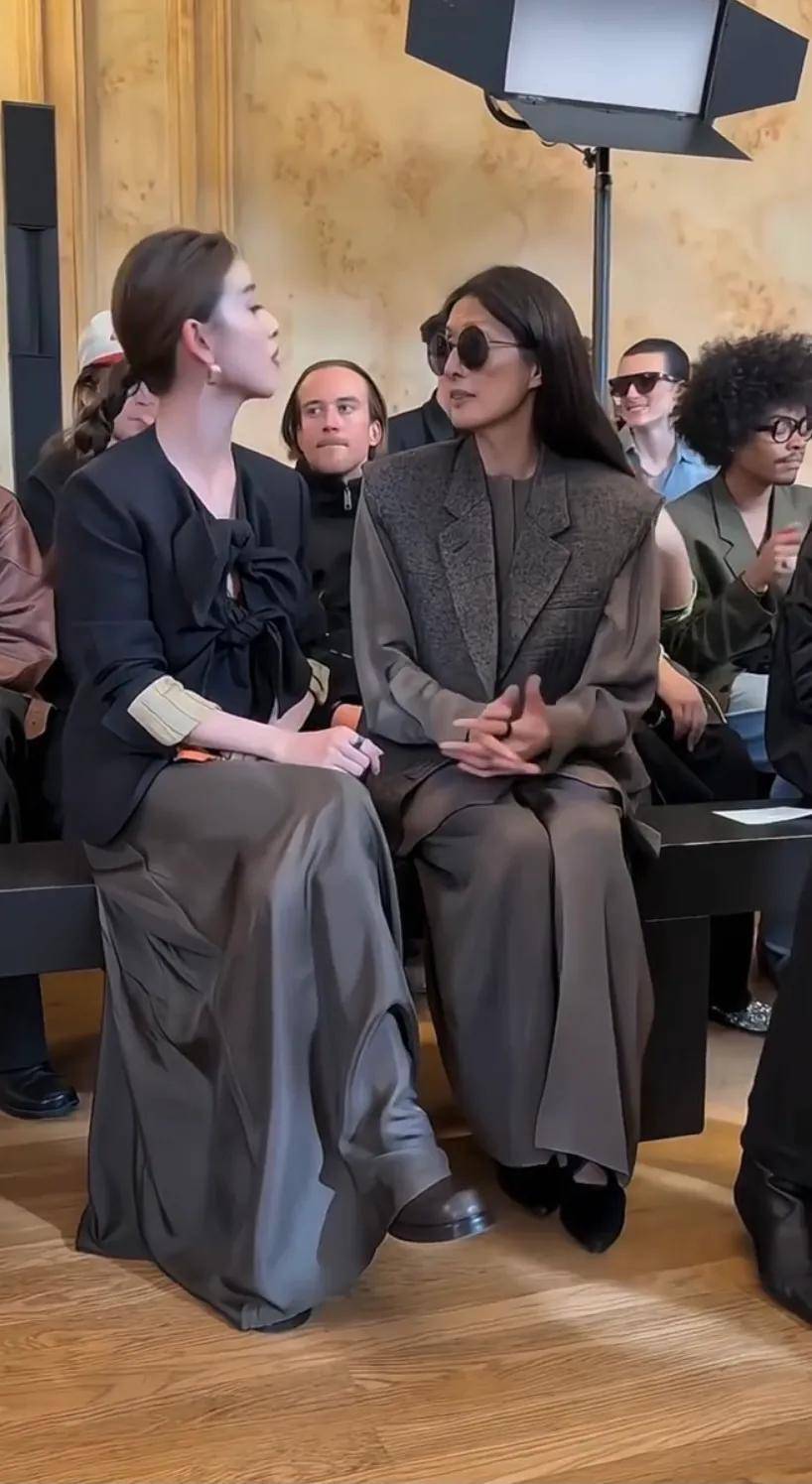 章泽天看秀时神情专注,皮肤白皙,模特走过时,她格外醒目,这般模样颇有刘亦菲妈妈的神韵。