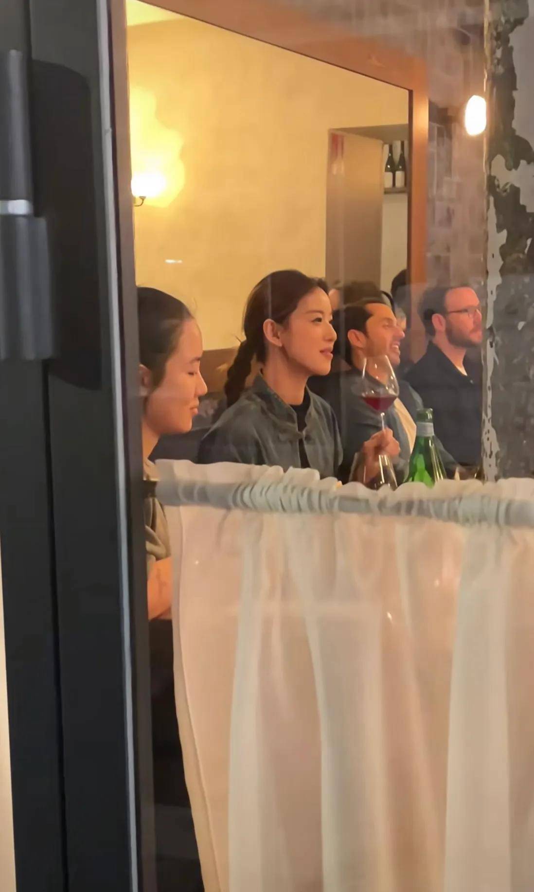 时装秀结束后,章泽天与友人相聚巴黎小餐馆,换上一件牛仔质地的新中式上衣,雅致时髦。晚宴上的她美丽动人,手持红酒敬酒,社交能力出众,自信满满。