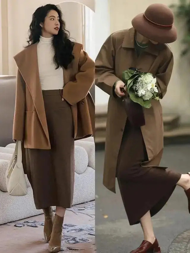“美拉德”色系确实在这个秋冬季很受女性的喜欢,特别是美拉德色彩的“大衣外套”,穿在身上之后就能瞬间提升整个人的气场,而且可以搭配裙子,裤子都没有任何问题,百搭又好看。