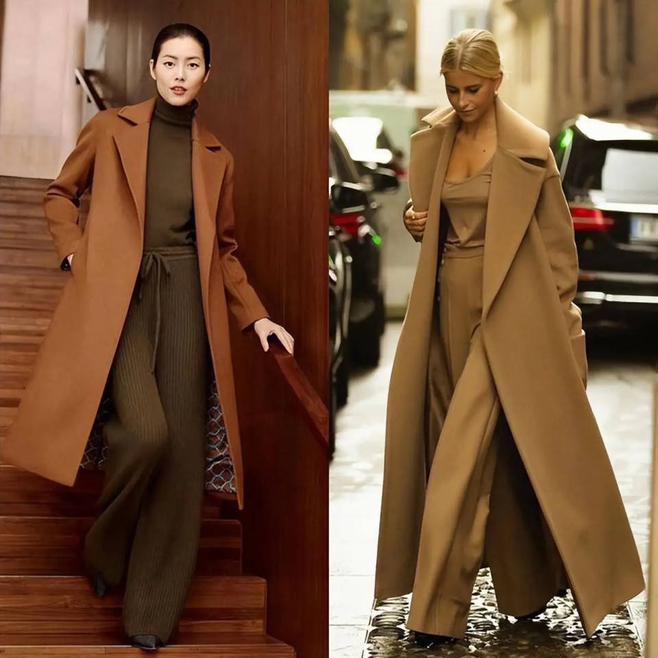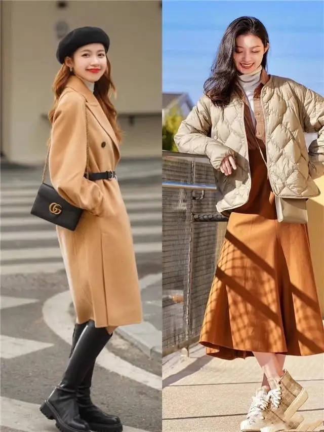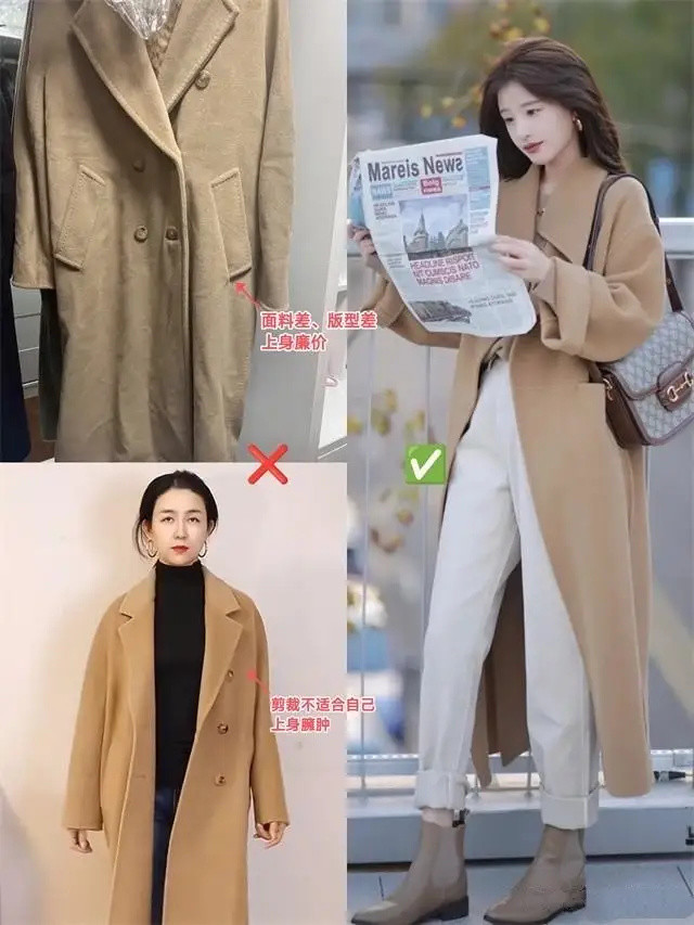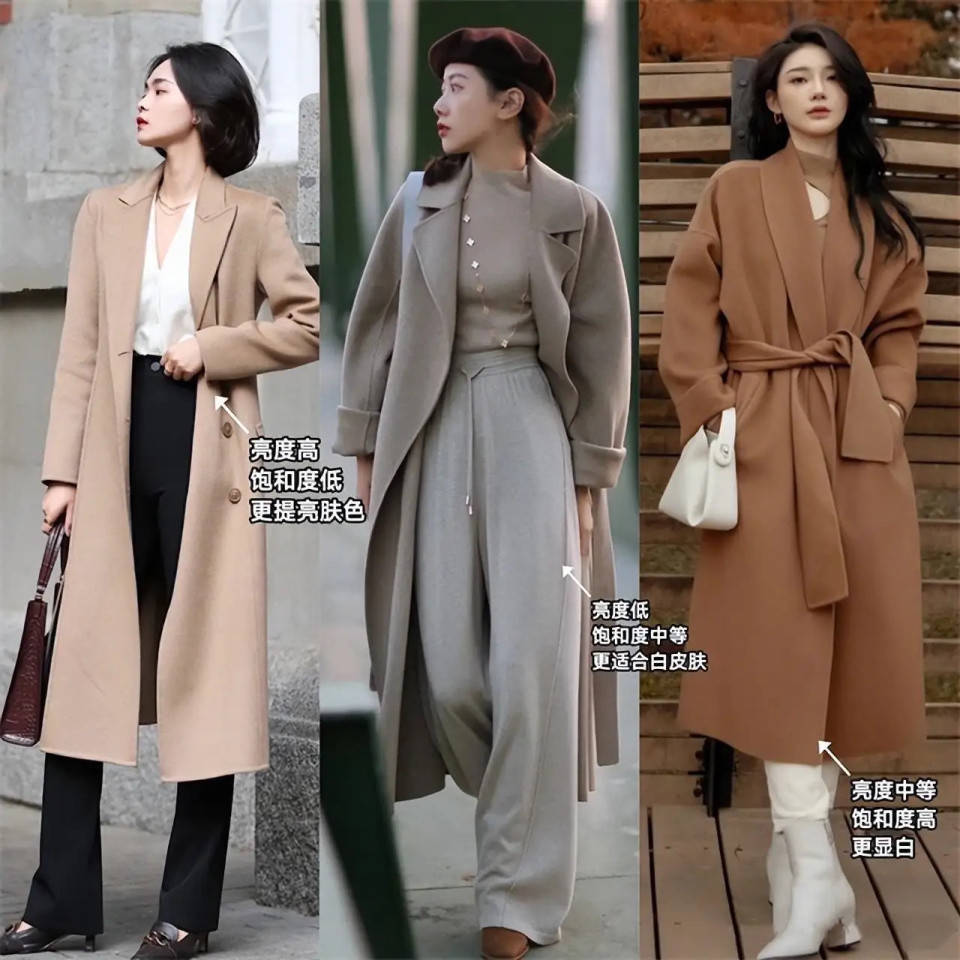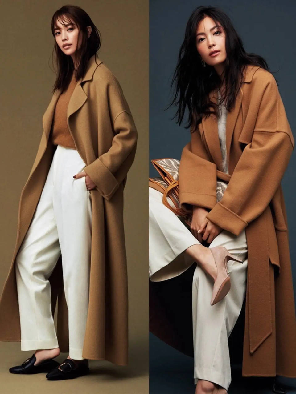 就算是高个子女性选择美拉德色系的大衣外套,也是需要有高腰收腰的设计,而且大衣外套的长度还不能过长,盖过膝盖超过三至五厘米最佳。