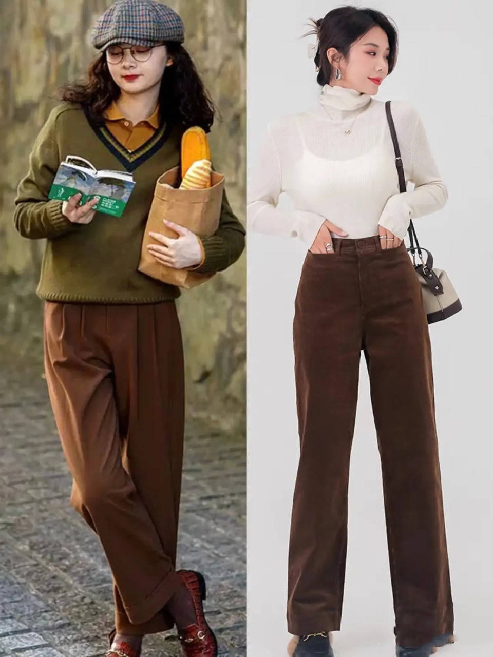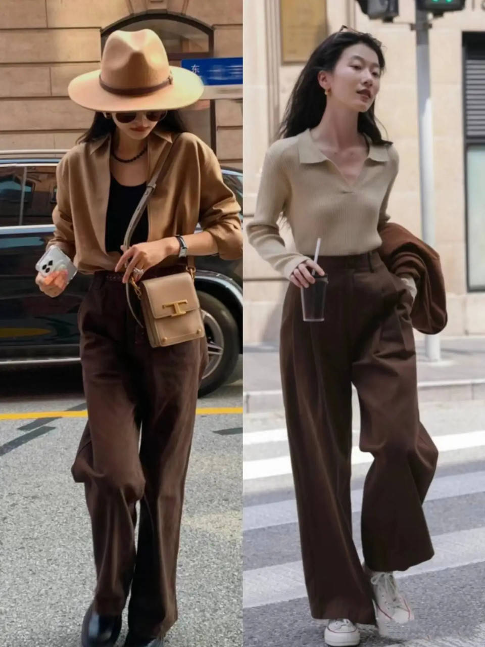 还在职场打拼的你,自然要把自己打扮的漂漂亮亮地,同时,精气神饱满,这时候你想要低调的穿衣风格,这时候下半身的裤子同样可以直接选择美拉德色系的西装裤和阔腿裤,搭配上针织上衣,就能穿出简约优雅的造型。