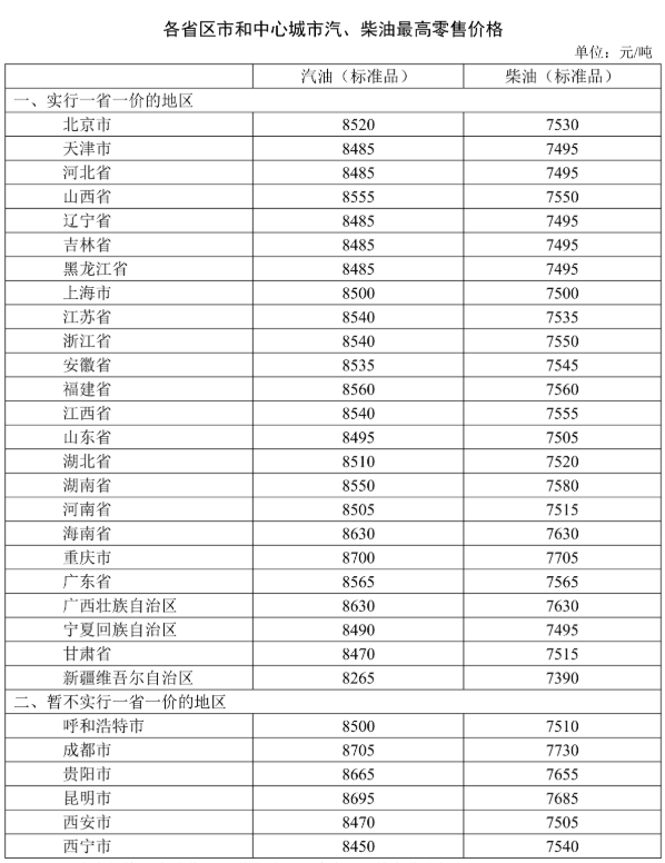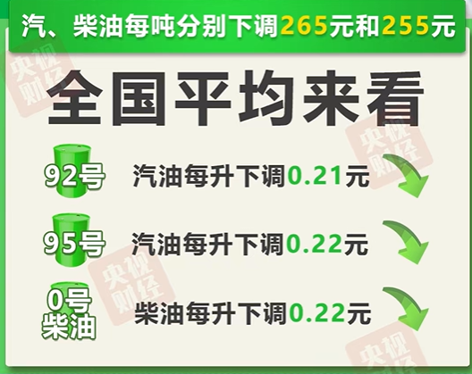 每升分别降0.21元、0.23元、0.22元